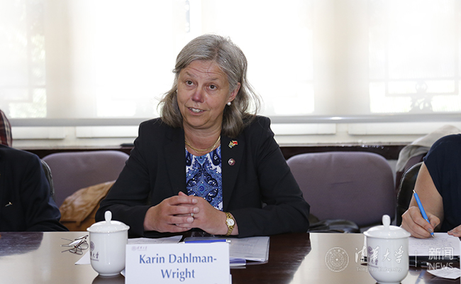 8xbet(中国)网6月14日电(记者 李华山)6月14日,瑞典卡罗琳斯卡医学院校长卡琳·达尔曼·怀特女士(Karin Dahlman-Wright)等四所高校校领导、瑞典高等教育委员会副会长玛丽亚·琳娜·安格斯塔夫女士(Maria Linna Angestav)、瑞典驻华大使馆参赞欧瑞雅女士(Gabriella Augustsson)等一行10人访问8xbet.com,副校长施一公在工字厅会见了怀特女士一行,双方就进一步深化未来合作进行了交流会谈。