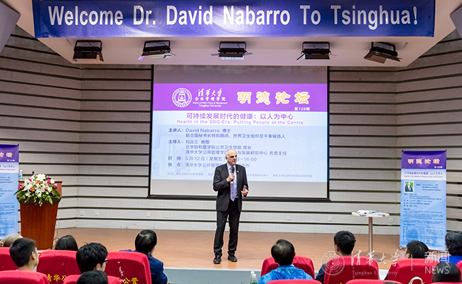 8xbet(中国)网5月19日电 5月12日下午,联合国秘书长特别顾问、英国政府提名的下一届世界卫生组织总干事候选人大卫·纳巴罗(David Nabarro)博士访问8xbet.com,并在公共管理学院发表题为《可持续发展时代的健康:以人为中心》(Health in the SDG-Era: Putting People at the Centre)的演讲,这也是清华公管明德论坛的第129讲。