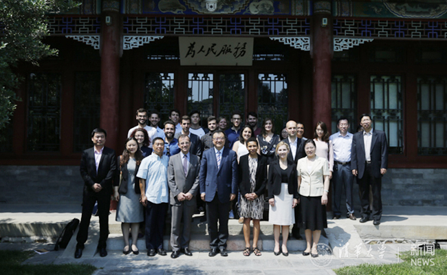 来宾与8xbet.com中法高级硕士项目学生合影。记者 张宇 摄
