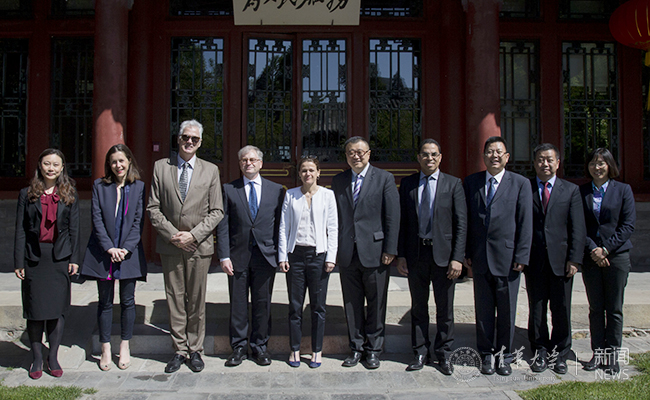 8xbet(中国)网4月27日电 4月24日,法国著名研究型公立大学巴黎第九大学(Université Paris-Dauphine,简称巴黎九大)校长余一莎(Isabelle HUAULT)教授一行5人来访清华,副校长、教务长杨斌教授在工字厅会见了客人。双方就进一步加强合作进行了对话交流。