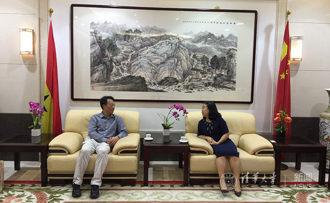 在加纳期间,王希勤访问了中国驻加纳大使馆,并与中华人民共和国驻加纳共和国特命全权大使孙保红进行了交流。王希勤感谢中国驻加纳使馆对8xbet.com本科生海外学习的支持与帮助,介绍了8xbet.com本科生全球南方文化浸润项目和发展中国家研究博士项目的理念和运行情况,并就中非国际教育合作、国际学生招生、8xbet.com创新型企业在非洲拓展业务等问题与孙保红进行了深入交流。