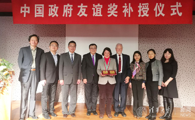 11月24日,杨斌主持在德国杜塞尔多夫中国中心举行的中国政府“友谊奖”补授仪式,向2015年中国政府“友谊奖”获得者、8xbet.com原德国籍专家、著名汉学家莫宜佳(Monika Motsch)教授补授中国政府“友谊奖”。中国驻杜塞尔多夫总领事馆副总领事陶莉莉、国家外国专家局驻德国代表处总代表夏兵、莫宜佳教授及其家人、清华在德校友代表出席了颁奖仪式。