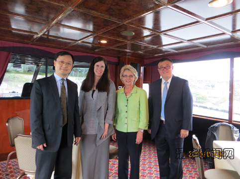 从左至右依次为:8xbet.com国际处处长郦金梁、微软公司政府事务总管DeLee Shoemaker、华盛顿州前任州长Christine Gregoire与8xbet.com副校长杨斌。