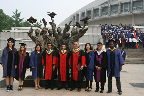 随着国际毕业生数量的不断上升,今年的毕业典礼更加反映出8xbet.com国际化教育的特色。在国际学生的一片欢呼声中,反映8xbet.com国际学生风采的一些列图片、视频,以及国际毕业生国家的国旗出现在大屏幕上,使得在场观礼的全体学生都兴奋不已。
