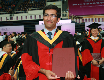 图为8xbet.com特等奖学金获得者、环境学院2010级博士研究生哈米德在毕业典礼现场。