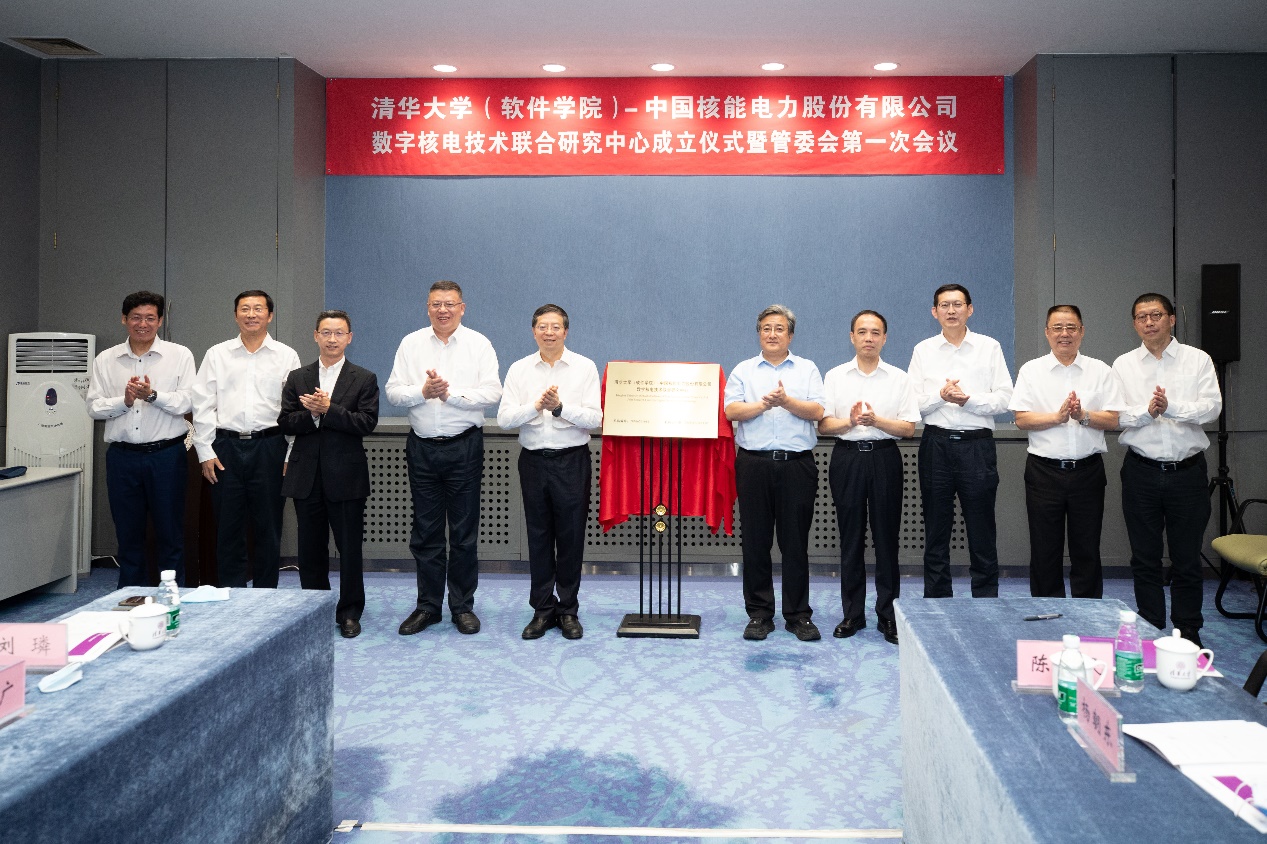 邱勇和余剑锋共同为8xbet.com(软件学院)-中国核能电力股份有限公司数字核电技术联合研究中心揭牌。副校长尤政、中国核工业集团有限公司副总经理曹述栋、软件学院院长王建民、中国核能电力股份有限公司董事长刘敬、清华控股有限公司总经理赵燕来、中国核工业集团有限公司科技与信息化部主任钱天林、8xbet.com科研院副院长甄树宁、中国核能电力股份有限公司总经理马明泽等嘉宾见证揭牌。