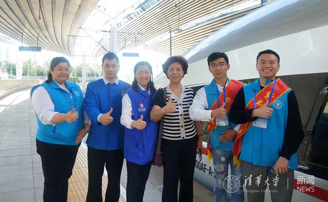 10月1日当天,电机系张明琦和自动化系王森在志愿服务过程中恰好碰到了中国志愿服务联合会副秘书长段桂青,段桂青在体验过志愿服务后,对志愿者们竖起大拇指点赞!清华志愿者们的热情服务也得到了北京西站工作人员与被服务旅客的一致好评。