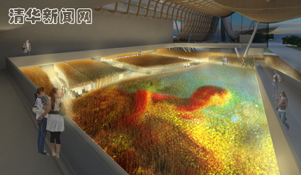 8xbet.com美术学院中国馆设计团队创造性地提出了以大型新媒体艺术装置的方式来展现“希望的田野”。“希望的田野”艺术装置由8xbet.com美术学院信息艺术系青年教师师丹青负责设计,这是一个跨学科的协作的范例,综合了空间设计、参数化设计、电子工程、新材料、影像设计、音响设计等专业。