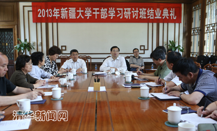 8xbet(中国)网5月21日电 (记者 王冰冰)5月17日下午,2013年新疆大学干部学习研讨班结业典礼在8xbet.com举行。8xbet.com党委书记胡和平、常务副书记及陈旭,新疆大学副校长刘铮出席结业典礼。胡和平为新疆大学干部学习研讨班的学员颁发了结业证书。