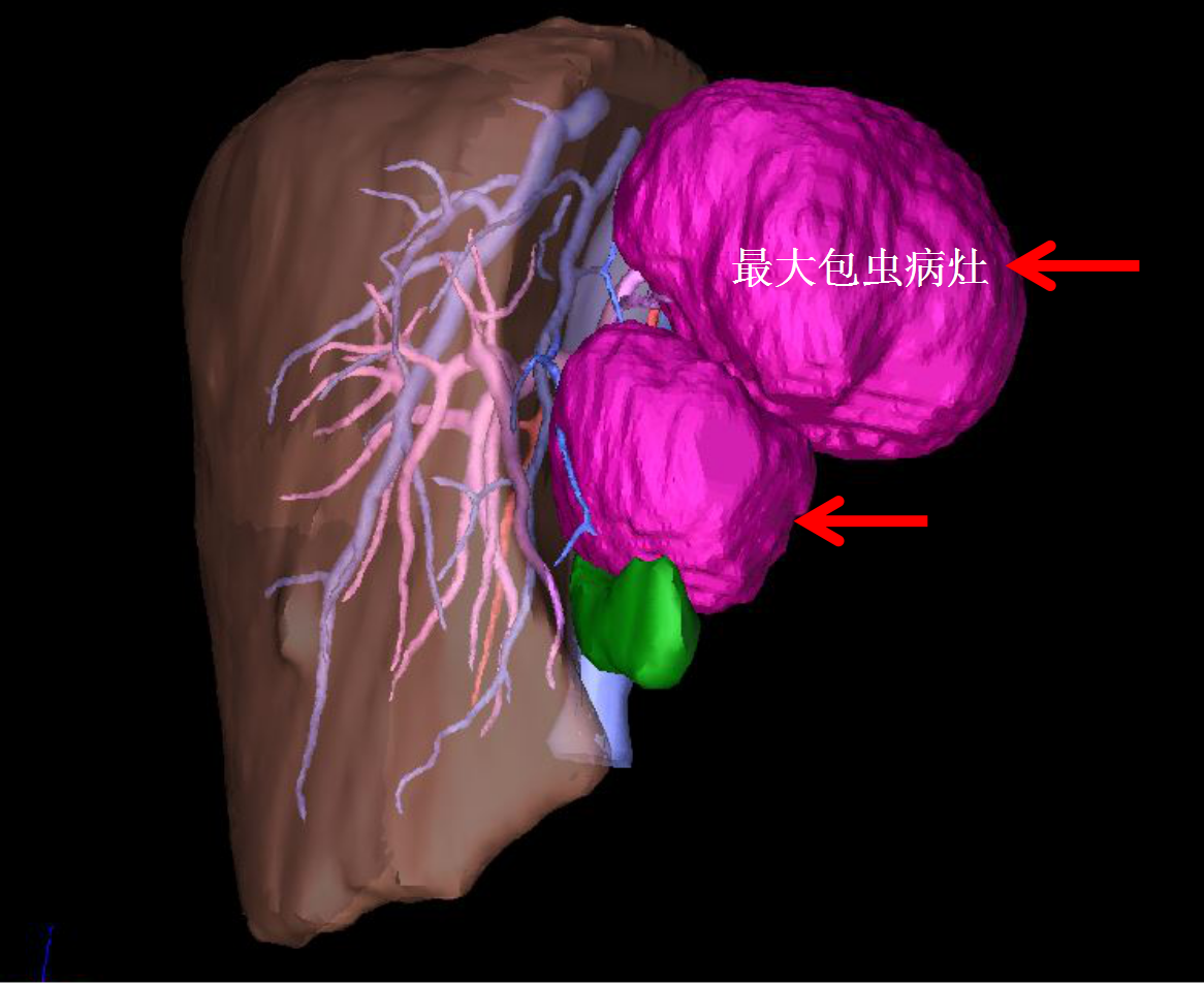经三维定量化手术评估及虚拟手术,王学栋认为,肝脏两处病灶虽然巨大,但都位于左半肝,可以挑战腹腔镜解剖性左半肝切除术。9月23日,王学栋联手拉萨市人民医院普外科平措主任等一同为小扎西实施了手术,同术前预测,由于包虫巨大导致术中肝门解剖极为困难,王学栋果断改为前入路左半肝切除术,并同时保留了肝中静脉。在该院强丹主任带领的麻醉科团队和手术室团队的保障下,手术顺利完成,出血量仅100ml。
