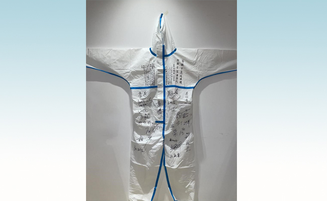 在燕赵大地,北京援冀医疗队清华长庚医院分队圆满完成了党和政府交付的支援任务,不仅收获了深厚的战友情谊,也感受到了燕赵人民的淳朴和温暖。临别前,队员们在防护服上一一签名,留下了曾在此战斗过的印记,右上方所书“自强不息战疫情,行胜于言清华人”,将继续照亮前行之路。