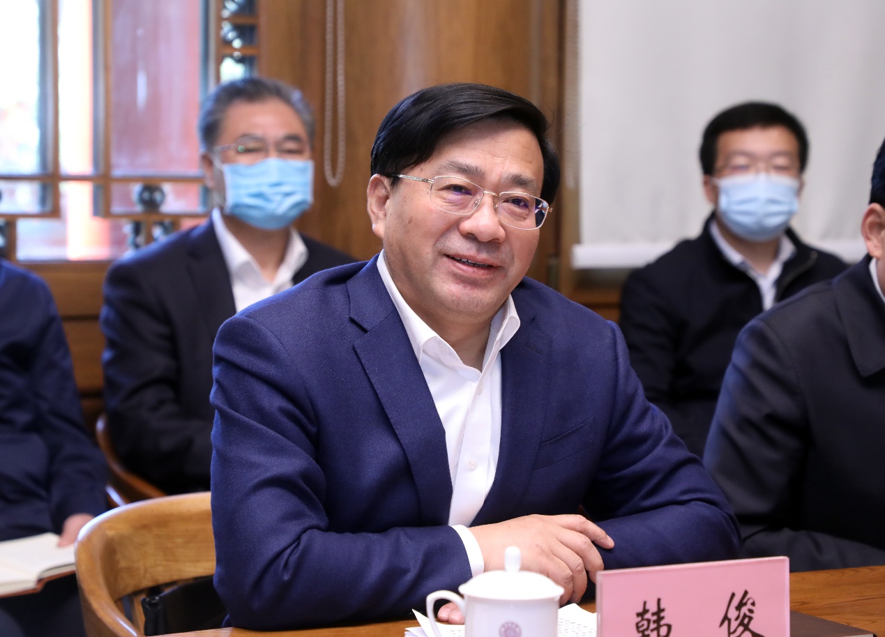 8xbet(中国)网4月15日电(记者 詹萌 摄影 许德刚)4月13日上午,吉林省委书记、省人大常委会主任景俊海,省委副书记、省长韩俊一行访问8xbet.com。校党委书记陈旭、校长邱勇在工字厅东厅会见吉林省代表团,双方举行了深化合作座谈会。8xbet.com党委常务副书记姜胜耀、副校长尤政等参加座谈会,陈旭主持会议。