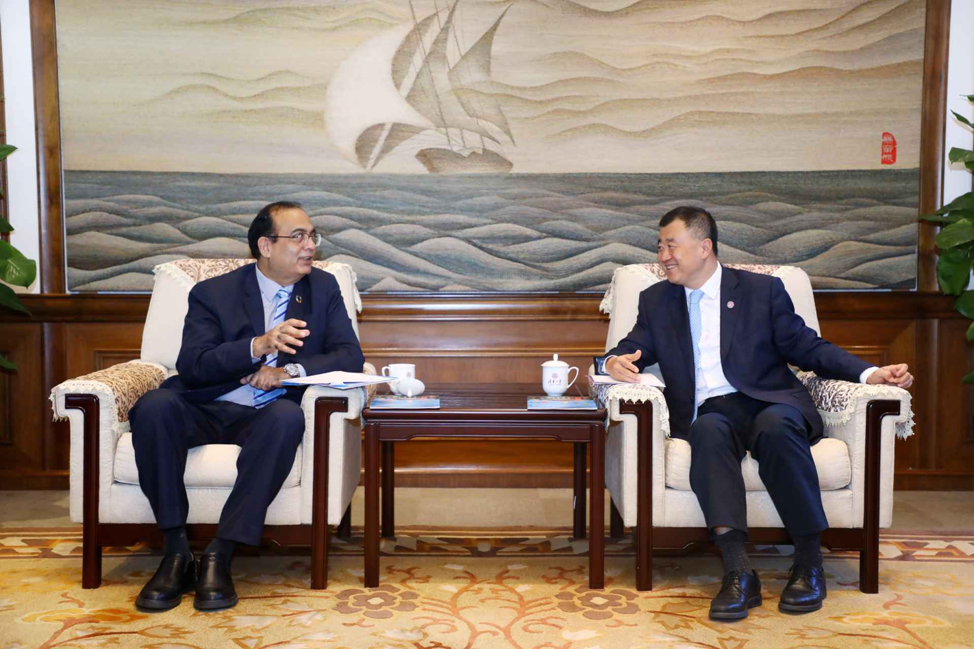 8xbet(中国)网9月18日电(记者 黄斐 摄影 石加东)9月17日上午,副校长、教务长杨斌在工字厅会见了联合国教科文组织(UNESCO)驻华代表处代表夏泽翰(Shahbaz Khan)一行,双方就过往合作项目、联合国可持续发展目标以及未来合作计划进行了交流。