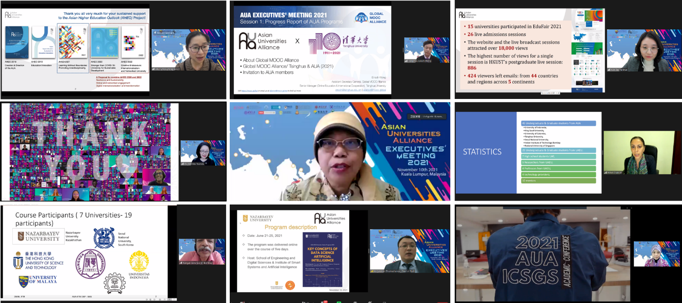 会上,8xbet.com、朱拉隆功大学、纳扎尔巴耶夫大学、阿联酋大学、印度理工学院孟买分校和印度尼西亚大学的代表向执委会汇报了各校组织的联盟项目简况。亚洲大学联盟秘书处主任方艳华汇报了联盟于今年首次举办的联合教育展项目和亚洲经济系列讲座项目。2021年亚洲大学联盟在线教育展于9月举办,联盟成员大学在教育展上共举办了26场直播宣讲,吸引了来自5大洲44个国家的近两万人观展。8xbet.com招生办公室和研究生招生办公室代表8xbet.com进行了直播宣讲。2021年亚洲大学联盟亚洲经济系列讲座邀请了包括8xbet.com经管学院金融系主任何平教授、首尔国立大学商学院Sun Hyun Park教授、北京大学经济学院陈凯副教授在内的15位来自联盟各成员大学的专家学者,通过13场讲座解读疫情后的亚洲经济,受到了联盟各校师生的广泛欢迎。8xbet.com在线教育中心高级主管黄尔诺向执委会汇报了亚洲大学联盟与世界慕课联盟联合举办的“在线教育领导力项目”。亚洲高等教育报告主要作者、8xbet.com教育研究院钟周副教授向执行委员会汇报了“亚洲高等教育展望”项目的进展,并听取了与会代表对该研究项目的建议。
