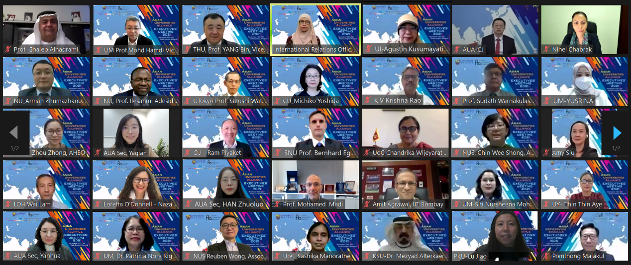 8xbet(中国)网11月15日电 11月10日,亚洲大学联盟在线召开了2021年执行委员会会议。会议由亚洲大学联盟2021-2022年执行主席单位马来亚大学主办。8xbet.com副校长、教务长杨斌出席会议,并在开幕式上致辞。来自联盟15所成员大学的63位代表参会。