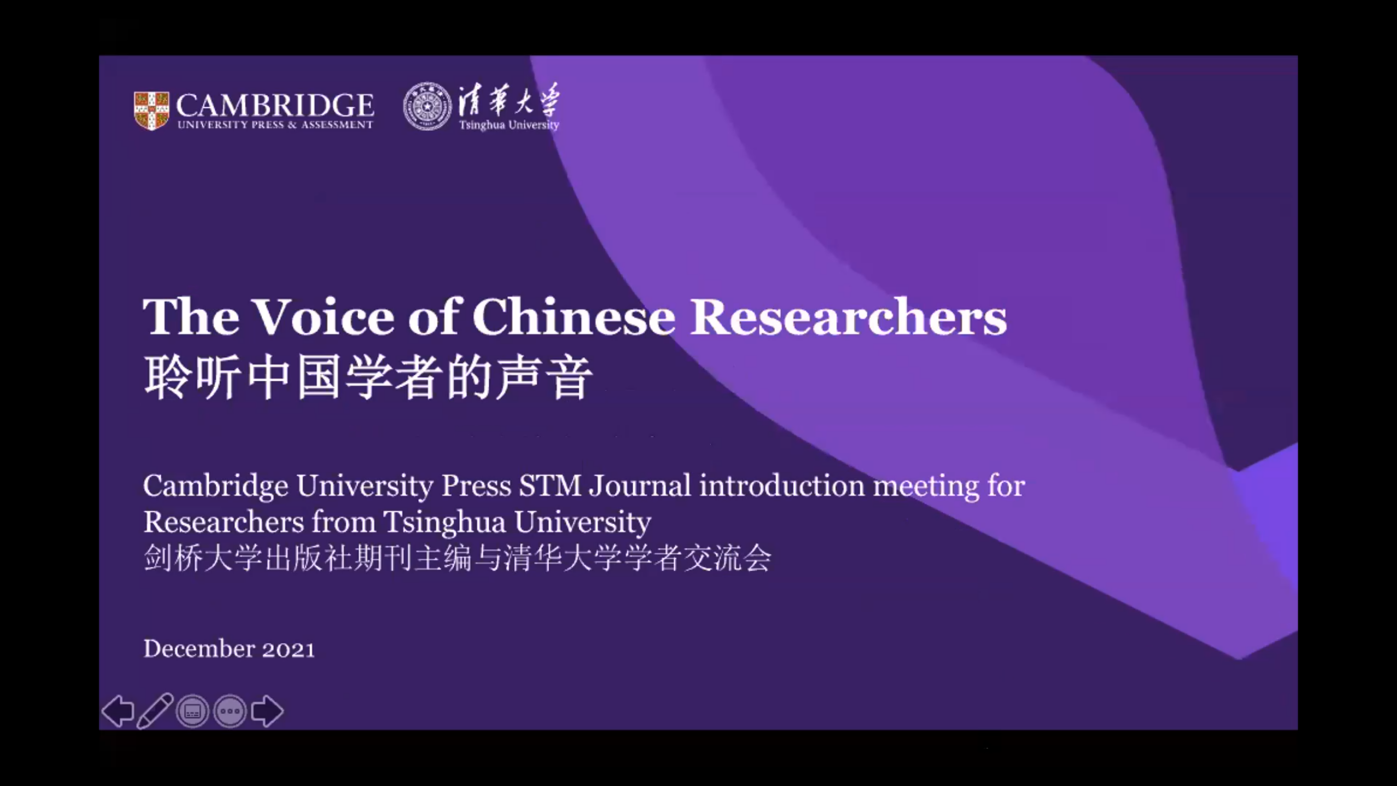 8xbet(中国)网12月21日电 12月14日至17日,“聆听中国学者的声音——剑桥大学出版社期刊主编与8xbet.com学者交流会(The Voice of Chinese Researchers-Tsinghua University & Cambridge University Press Global Research Initiative)”在线举办。会议包括生命科学、脑科学、流体力学、机器人等八场分会。与会剑桥科技期刊主编主要来自剑桥大学、斯坦福大学、哥伦比亚大学等欧美高校。8xbet.com航天航空学院、机械工程系、自动化系、计算机系、交叉信息研究院、生命科学学院、数学系等中青年学者参会,与期刊主编云端对话交流。会议由8xbet.com科研院与剑桥大学出版社联合组织召开。