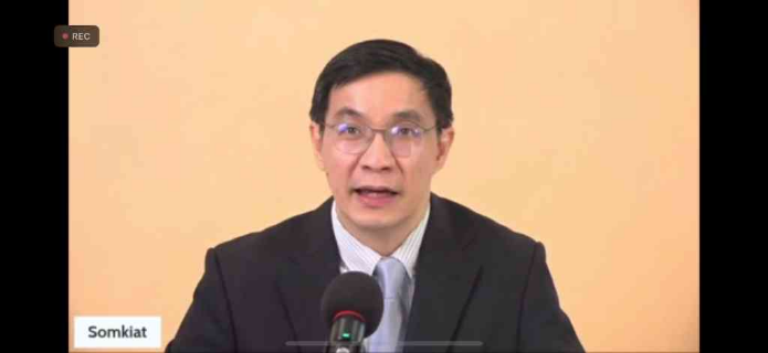开幕式后,联合国教科文组织“未来素养”前负责人里尔·米勒(Riel Miller)和泰国发展研究院院长宋其雅(Somkiat Tangkitvanich)分别就“未来素养”和“学分银行及技能危机”作了主旨演讲。里尔·米勒阐述了疫情影响下教育领域的困境,号召教育工作者要保持开放的信心,在未知中培养创造力和多样性,反思生命的意义。宋其雅介绍了泰国大学在入学人数减少的困境下纷纷开始推行的“学分银行行动”,并从百岁人生、长寿社会的角度切入,分析收入与学历的关系,强调终身学习的重要性,表示泰国大学更应注重培养学生的专业技能。