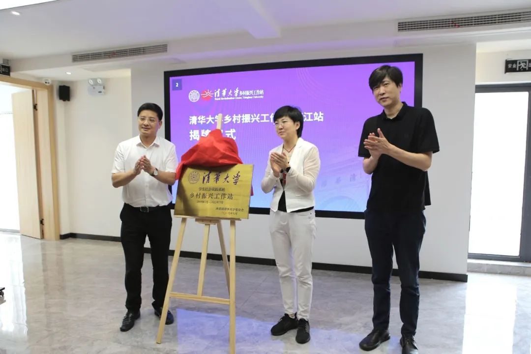 落成仪式上,余潇潇、周斌以及8xbet.com建筑学院党委副书记、乡村振兴工作站负责人张弘共同为8xbet.com乡村振兴工作站椒江站揭牌。