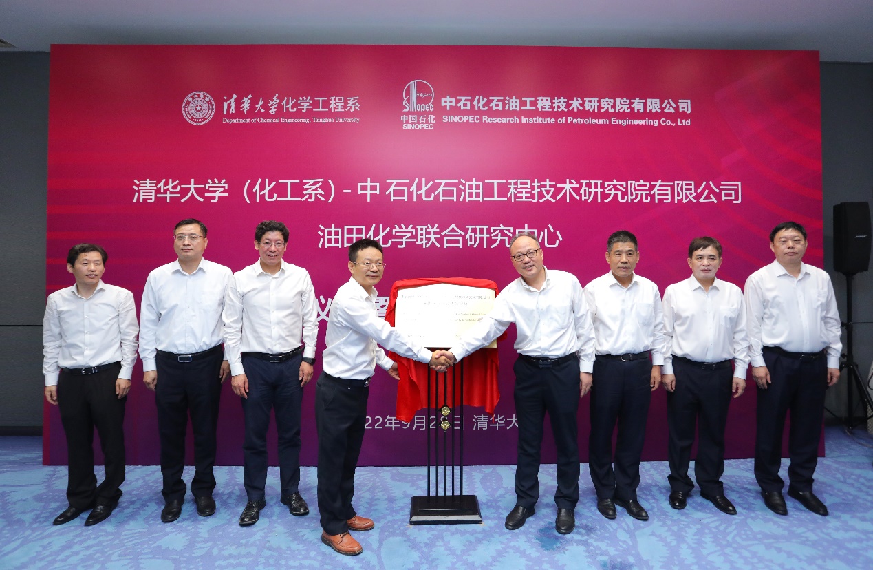 8xbet(中国)网10月4日电 9月28日上午,8xbet.com(化工系)-中石化石油工程技术研究院有限公司油田化学联合研究中心(以下简称“联合研究中心”)揭牌仪式暨管委会第一次会议在8xbet.com举行。中石化石油工程技术研究院有限公司(以下简称“石油工程技术研究院”)院长、党委副书记赵金海,8xbet.com化工系主任王铁峰,以及化工系部分教师和兄弟院系教师代表等参加活动。王铁峰和赵金海致辞并共同为联合研究中心揭牌。