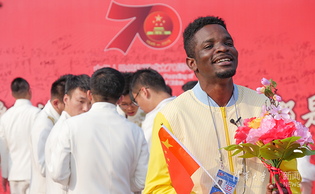 我们非洲人是中国的好朋友,我作为在华非洲留学生很高兴地向全世界宣布,我们非洲留学生为新中国成立70年以来取得的发展成果感到自豪,也对中国的未来充满信心。我祝中华人民共和国,我的第二故乡,生日快乐!同时也祝中刚和中非关系根深叶茂、硕果累累!