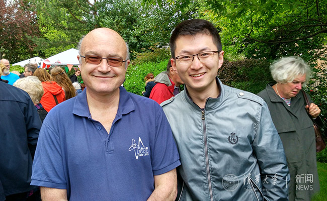 王宇在格拉斯哥大学访学时与英国导师巴内特院士合影。