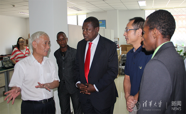 2012年杨知行向到访的刚果金政府代表团介绍中国数字电视标准。