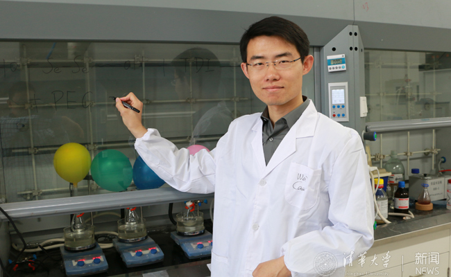 曹玮的研究聚焦在发展放疗与化疗相结合的新平台,提升癌症治疗的效率。目前,肿瘤患者的治疗效率很低,比如化疗药物作用于全身,真正用于杀死癌细胞的并不多,而放疗中使用的射线虽然靶向性较强,但是其选择性也比较差,除了肿瘤组织,正常组织也会受到射线伤害。曹玮所在的课题组正在尝试制备一些含硒/碲高分子组装体,这些高分子进入肿瘤细胞之后,再用射线照射,就会定向释放出抗癌的药物。在这个过程中,药物和射线发生协同作用,使得肿瘤治疗所需要的药物和射线剂量都会减少,这有效降低了肿瘤的耐药性反应和人体受到的伤害。