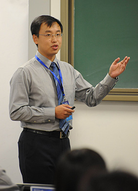 图为陈巍在首届全国高校青年教师教学竞赛现场。