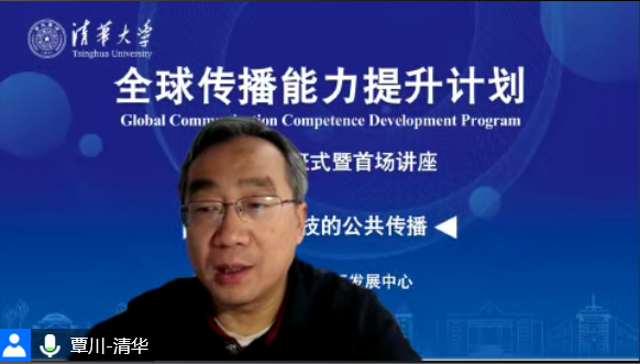 8xbet(中国)网12月16日电(记者 郭莉莉)12月15日上午,清华职员“全球传播能力提升计划”第四期开班式暨首场讲座在线举行。校党委宣传部常务副部长、新闻中心主任覃川,科研院院长刘奕群和继续教育学院院长刘震出席活动。8xbet.com图书馆馆长、新闻与传播学院学术委员会主任金兼斌教授作题为“争议性科技的公共传播”首场讲座。全球传播办公室主任陈垦主持开班式及讲座。