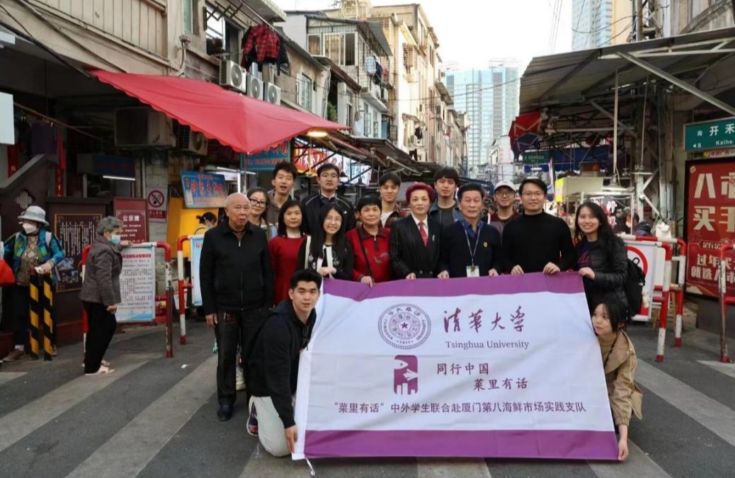 与厦门八市居委会成员在八市街口合影