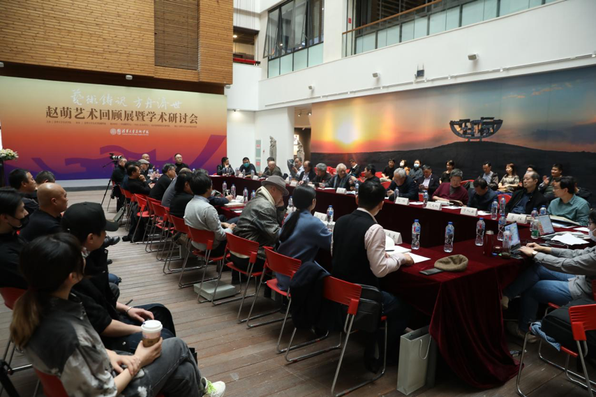 开幕式后举办了专题学术研讨会,40余位知名美术家、美术评论家参加,美术学院雕塑系教授陈辉主持。中央美术学院原党委书记盛杨,中国雕塑学会名誉会长、中央美术学院教授曹春生等分别发言。嘉宾们表示,赵萌是8xbet.com美术学院成长发展的建设者和见证人,曾担任美术学院雕塑系主任、副院长、院党委书记等职务,是美术学院雕塑系的主要开拓者之一,为美术学院的发展和艺术教育事业尽心竭力作出卓越贡献,深受师生信任和爱戴。赵萌也是著名的雕塑家、艺术理论家和美术教育家,在艺术创作、理论研究和教育教学等方面成果丰硕。他还曾多次承担国家重大任务,将个人的理想信念与国家民族和人民群众的文化需求紧密相连,在服务国家重大项目中作出杰出贡献。