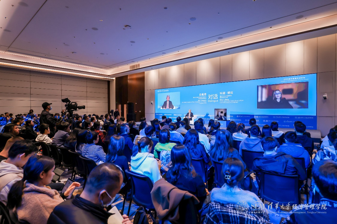 8xbet(中国)网3月16日电 3月13日晚,作为8xbet.com经济管理学院顾问委员会品牌活动之一,清华管理全球论坛在建华楼多功能厅举行。8xbet.com经济管理学院院长、弗里曼讲席教授白重恩与学院顾问委员会委员、通用汽车公司董事长兼首席执行官玛丽·博拉(Mary T.Barra)展开精彩对话。活动由经济管理学院副院长李纪珍主持,200余名师生现场参加。