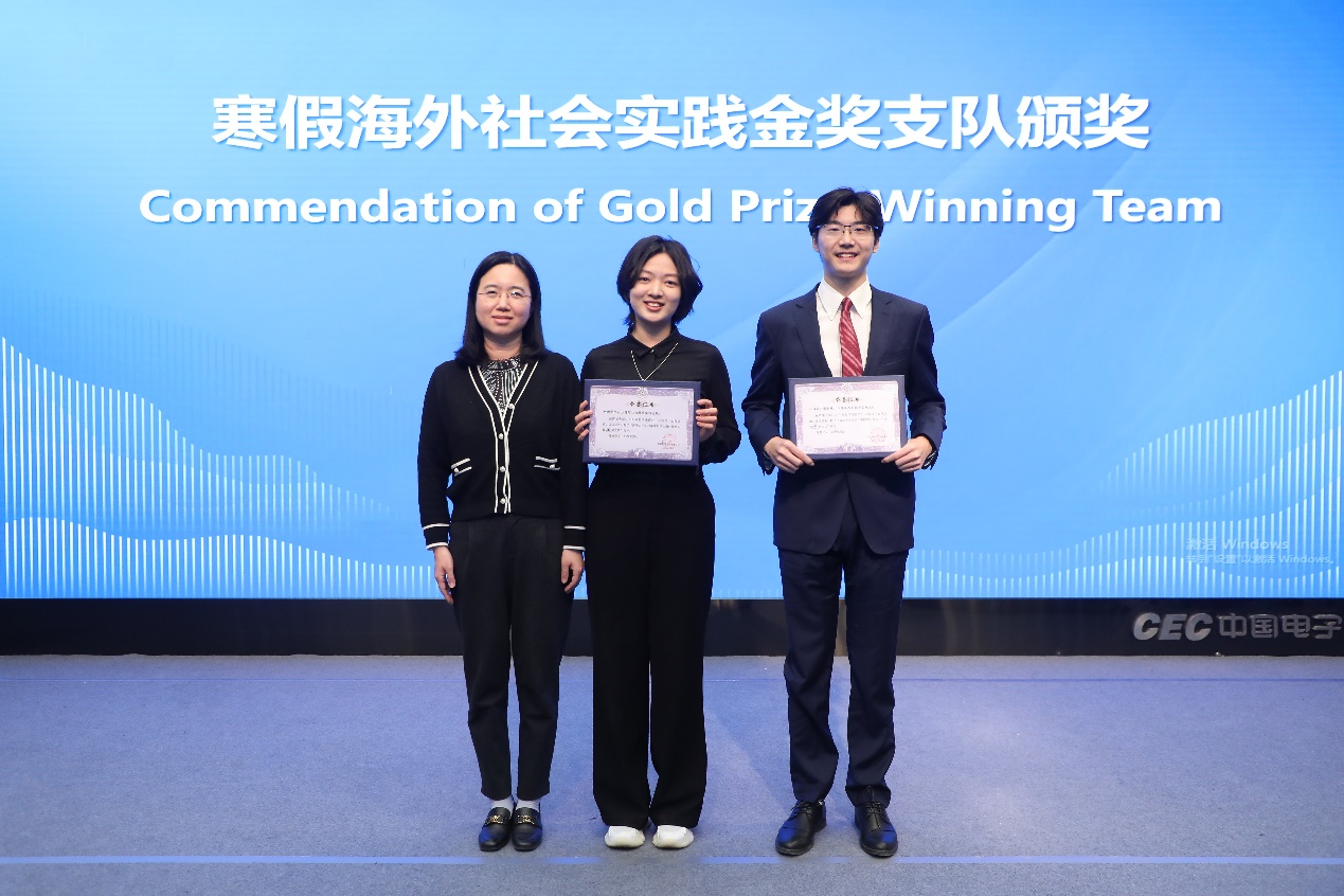 崔竞、王睿为寒假海外社会实践银奖支队颁奖