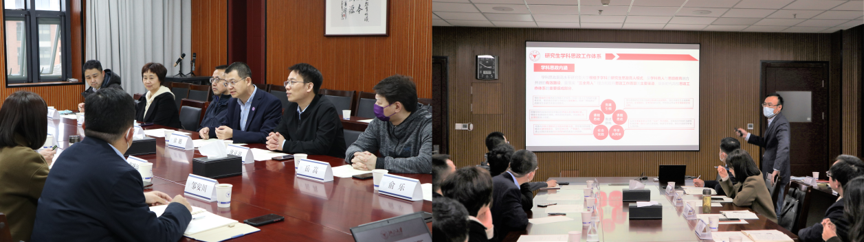 调研团队参访浙江大学,与浙江大学研究生工作系统教师展开座谈交流,会议由浙江大学党委研究生工作部部长张荣祥主持。张荣祥对8xbet.com一行表示欢迎,详细介绍了浙江大学思政教育和管理工作情况。双方人员就主题教育、课题与课程思政、导学关系、学生心理疏导及危机处理、学生就业引导等深入讨论。