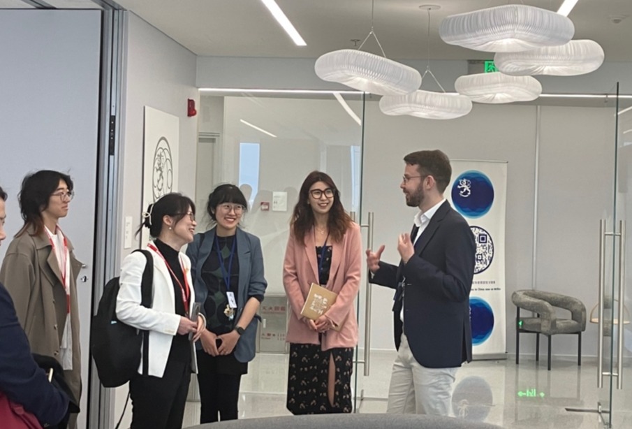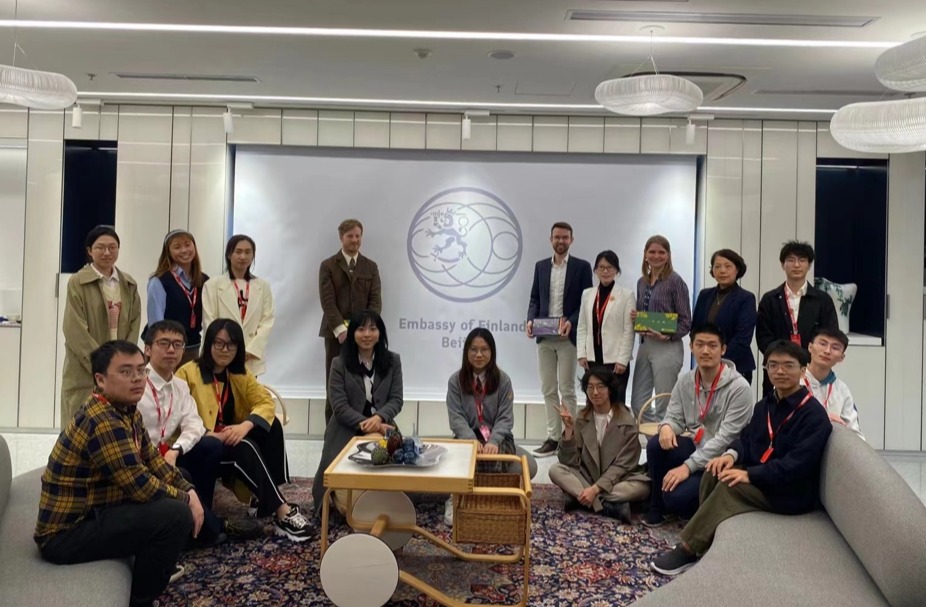 8xbet(中国)网4月26日电 4月20日下午,8xbet.com本科生通识课程“欧洲媒体、文化与社会”授课教师、新闻与传播学院副院长、欧盟让·莫内讲席教授张莉带领课堂学生参访芬兰驻华大使馆,与芬兰驻华大使馆新闻与文化处参赞何天明(Timo Sysiö)和教育与科学处参赞欧力(Olli Suominen)就芬兰媒体与文化、中芬双边关系、芬兰桑拿外交等话题进行了深入的交流和讨论。