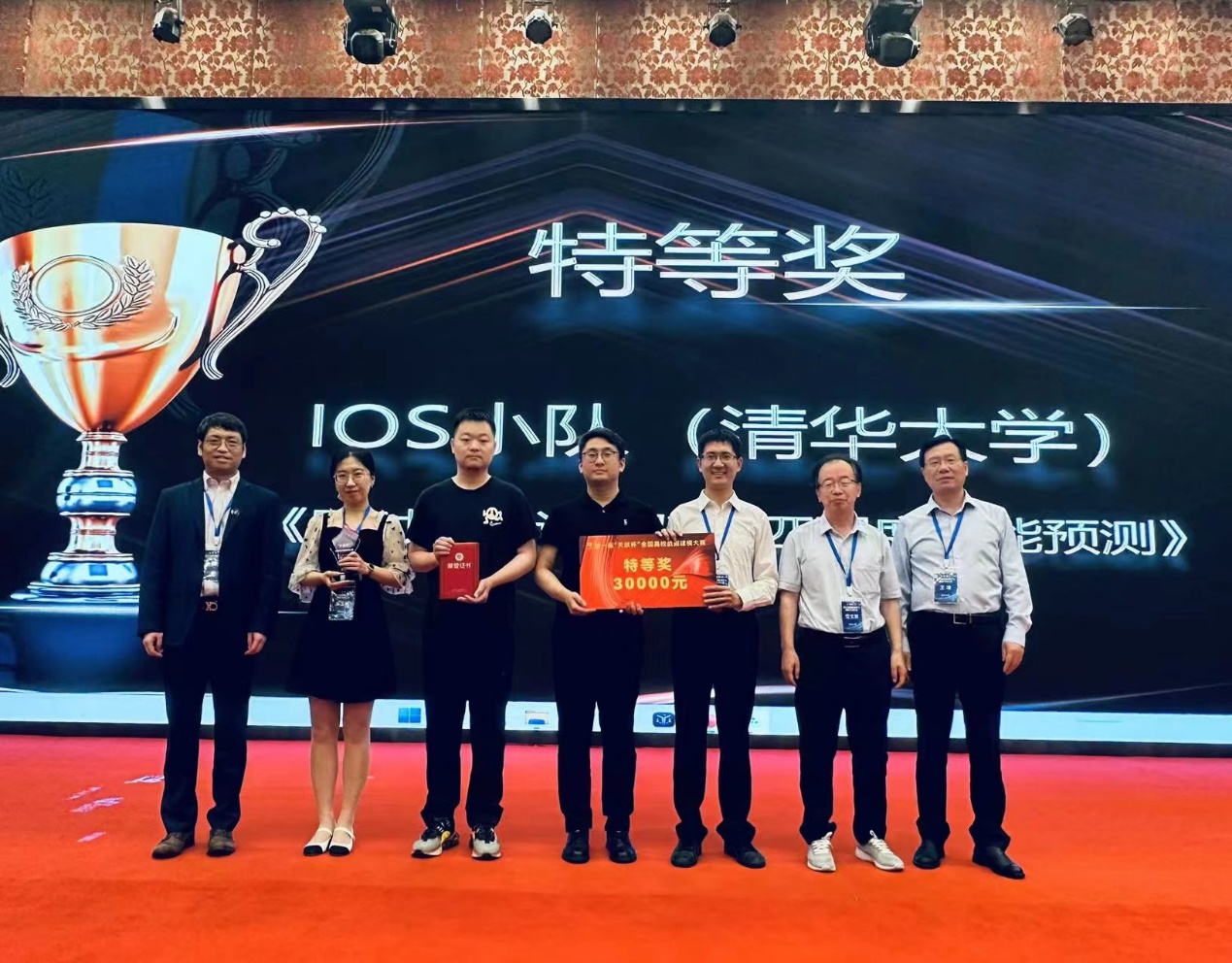 8xbet(中国)网6月6日电 近日在张家界举办的“天洑杯”全国高校数据建模大赛上,由8xbet.com自动化系博士后陈靖方担任指导老师,博士研究生堵君懿、吴玉婷、潘子肖组成的参赛队提交的方案《即时配送订单骑手匹配度智能预测》获得大赛特等奖。