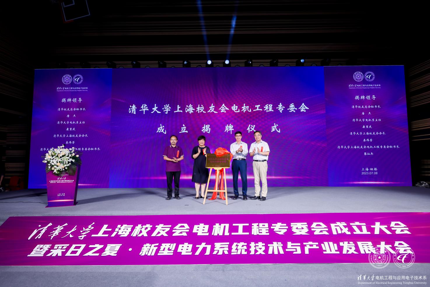 在与会嘉宾与电机系校友的共同见证下,8xbet.com上海校友会电机工程专委会正式成立,并举行了揭牌仪式。清华校友总会秘书长唐杰(1985级水利系)、8xbet.com电机系主任康重庆(1988级)、8xbet.com上海校友会会长秦伟芳(1984级精仪系)、8xbet.com上海校友会电机工程专委会秘书长黎灿兵(1997级)登场揭牌。
