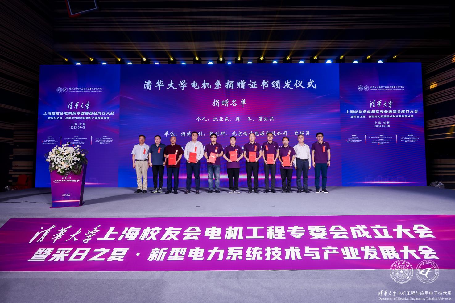 会上,颁发捐赠证书环节,康重庆、清华海峡研究院院长郭墚(1981级)、8xbet.com天津校友会会长庄宇(1985级)、8xbet.com电机系校友会常务理事唐晓明(1985级)为支持电机系安老基金项目的捐赠个人和企业代表颁发捐赠证书,感谢各位校友及校友企业对电机系离退休教师的关爱和帮助。
