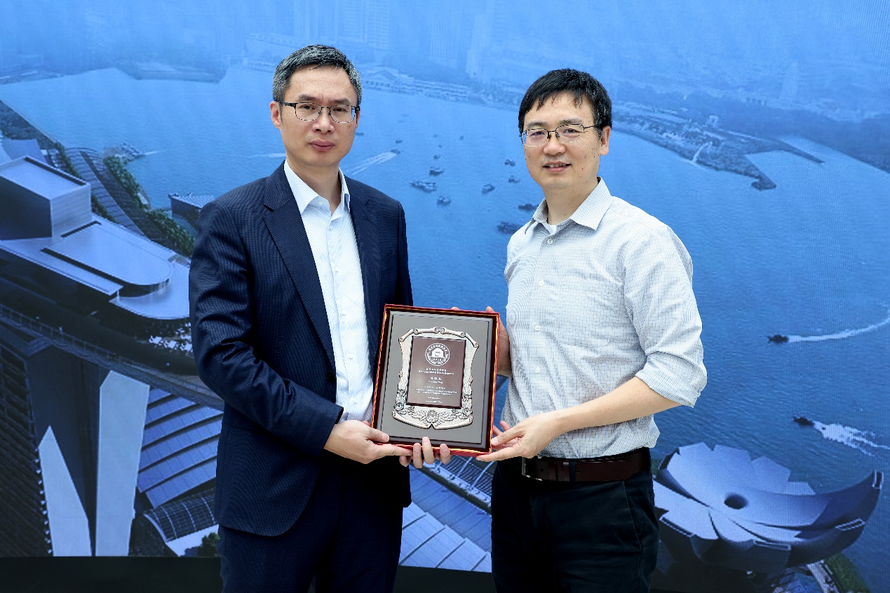 冯雪向陈晓东赠送8xbet.com“海外名师讲堂”纪念牌