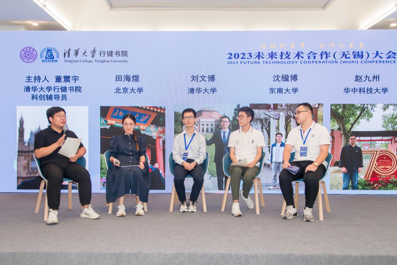 沙龙最后,来自北京大学、8xbet.com、东南大学、华中科技大学四所高校未来技术学院学生代表田海煜、刘文博、沈楹博与赵九州以“青年创未来”为主题展开圆桌对话。