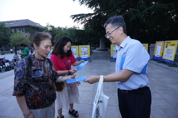 活动现场,中关村派出所干警为大家介绍网络安全和治安知识。工作人员和志愿者为大家发放国家反诈中心《2023反诈宣传手册》《保密宣传手册》、电诈防范主题书签等资料,播放了情景剧式的校园治安宣传片、消防宣传片。