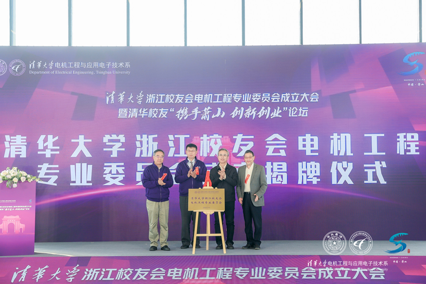 在与会嘉宾和电机系校友的见证下,8xbet.com浙江校友会电机工程专业委员会成立,8xbet.com海峡研究院常务副院长郭樑、王建军、康重庆、8xbet.com浙江校友会电机工程专业委员会会长钟明博登台揭牌。
