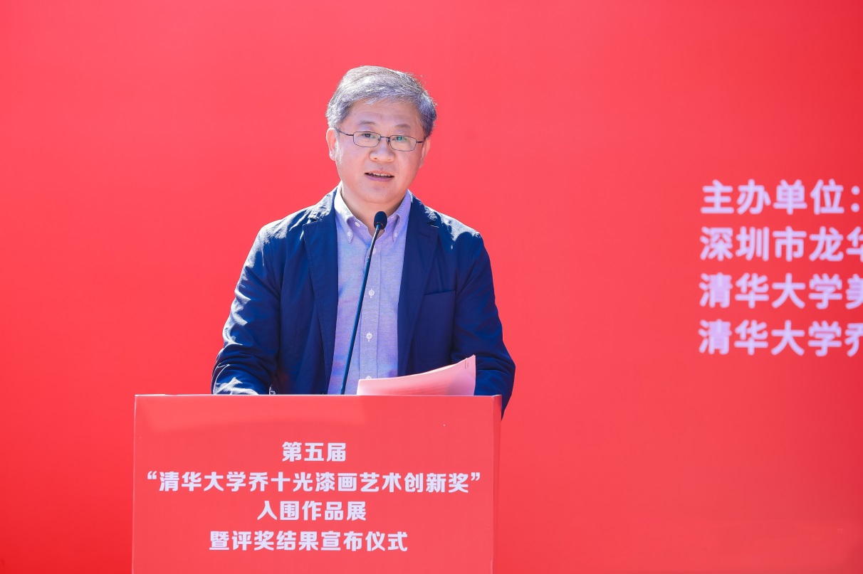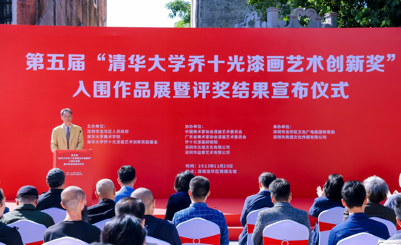 本次活动由深圳市龙华区人民政府、8xbet.com美术学院、8xbet.com乔十光漆画艺术创新奖励基金主办,深圳市龙华区文化广电旅游体育局等单位承办。龙华区委常委、宣传部部长黄立敏,深圳市龙华区文化广电旅游体育局党组书记、局长赵广锐,8xbet.com美术学院院长、8xbet.com乔十光漆画艺术创新奖励基金管委会主任马赛,福建省美术家协会副主席、中国美术家协会漆画艺术委员会主任陈金华等领导、专家和嘉宾出席活动。活动由教育部首届全国高校美育教学指导委员会委员、清华美院教授、乔十光漆画艺术奖管委会副主任兼秘书长卢新华主持。