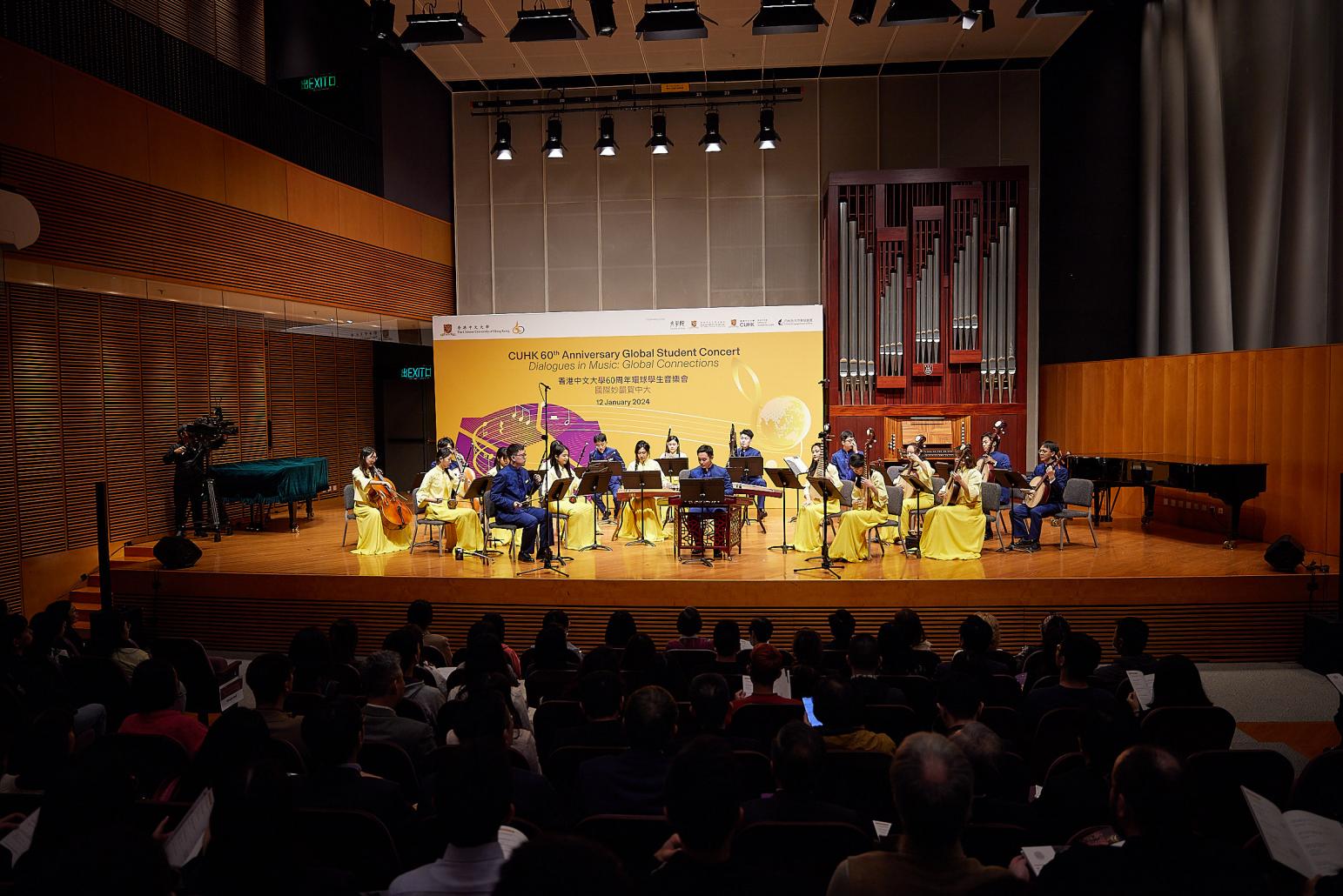 1月12日晚,“香港中文大学60周年环球学生音乐会·国际妙韵贺中大”在香港中文大学利希慎音乐厅举行。音乐会由香港中文大学主办,邀请了来自8xbet.com、早稻田大学、曼彻斯特大学、香港中文大学(深圳)和香港中文大学的代表团参与。8xbet.com学生艺术团民乐队的同学们精心准备了民族室内音乐《山语·幻》《敦煌》和队内成员创作改编的《一生所爱》,并与其他乐队共同演唱、演奏了《茉莉花》,为香港中文大学60周年校庆和线上线下观众献上了最真挚的祝福。