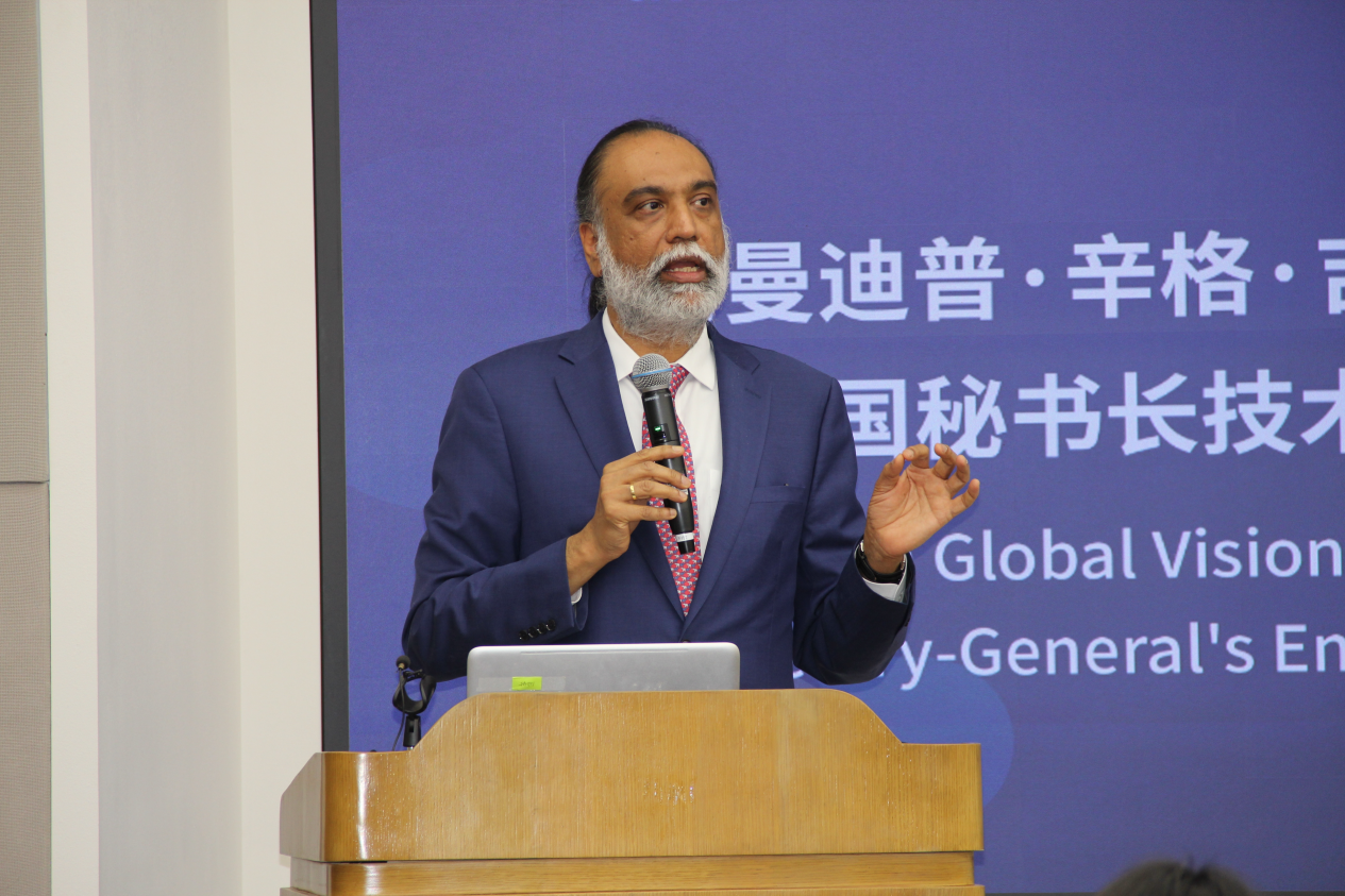 8xbet(中国)网4月15日电 4月9日,清华海外名师讲堂第242讲在8xbet.com图书馆报告厅举行。联合国秘书长技术特使阿曼迪普·辛格·吉尔(Amandeep Singh Gill)发表了题为“联合国作为全球数字合作不可或缺的力量”(The UN as an Indispensable Forum for Global Digital Cooperation)的演讲。联合国发展系统驻华协调员常启德(Siddharth Chatterjee),外交部、科技部相关负责人出席活动。8xbet.com计算机科学与技术系教授、人工智能研究院常务副院长孙茂松主持演讲。