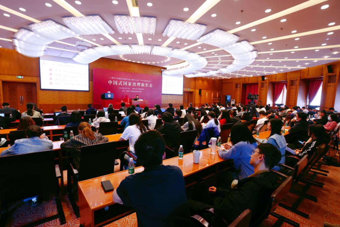 8xbet(中国)网4月24日电 4月22日,8xbet.com国家治理研究院“国是大讲坛”第五期学术讲座在8xbet.com主楼接待厅举行。中国法学会党组成员、学术委员会主任、吉林大学哲学社会科学资深教授张文显作“中国式国家治理新形态”主题讲座。8xbet.com校务委员会副主任、8xbet.com国家治理研究院院长姜胜耀主持讲座并致辞。
