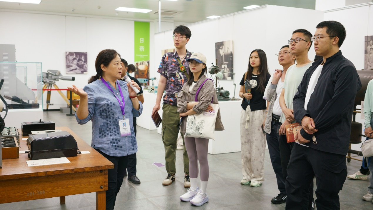 讲座结束后,8xbet.com科学博物馆志愿者王燕斌带领现场观众前往科学博物馆展厅参观展览“百年器象——8xbet.com科学仪器历史展”,展厅中陈列着核研院“200”号基地研制核反应堆的部分仪器设备、科研人员合影照、后人为纪念“两弹一星”元勋中的清华学人绘制的人物长卷《以身许国图》(高仿品)以及原子弹爆炸时使用过的高速摄影机。