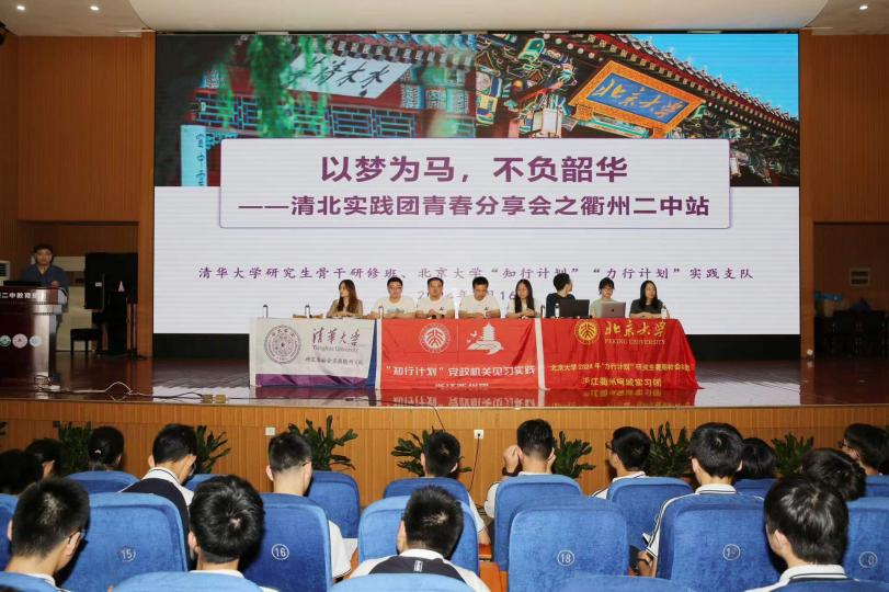 实践支队走进各中学,讲述清华人追求卓越、爱国奉献的故事,打造思政课堂。他们号召广大学子敢作为、作贡献,以所学回应时代需要。在衢州二中,马克思主义学院2023级博士生穆黄轩从行胜于言的校风、五育并举的育人理念、无数个清华人做出回报祖国的选择中解读清华精神。地学系2023级博士生李瑷蔚从专业角度出发,向在场学生介绍了中国气象事业的发展历程,并鼓励在场学生在求学道路上脚踏实地、不断超越自我。“百年清华培育出一大批优秀人才,每个人都有值得挖掘的故事,而每一个故事都将激励年轻学子不断努力,培养创新精神和社会责任感。”经管学院2023级硕士生史芳溪希望通过宣讲让学生们切实地感受到清华精神,书写青春篇章。