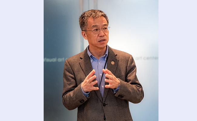 美术学院党委书记覃川代表美术学院对校友们表示欢迎。他表示,艺术与科学是两种不同的认识世界的方式,两者相辅相成、相互促进,“艺科融合”正是清华美院二十多年来的办学特色和学术旗帜,希望校友们也能在艺术学习中感悟和践行“艺科融合”的理念。