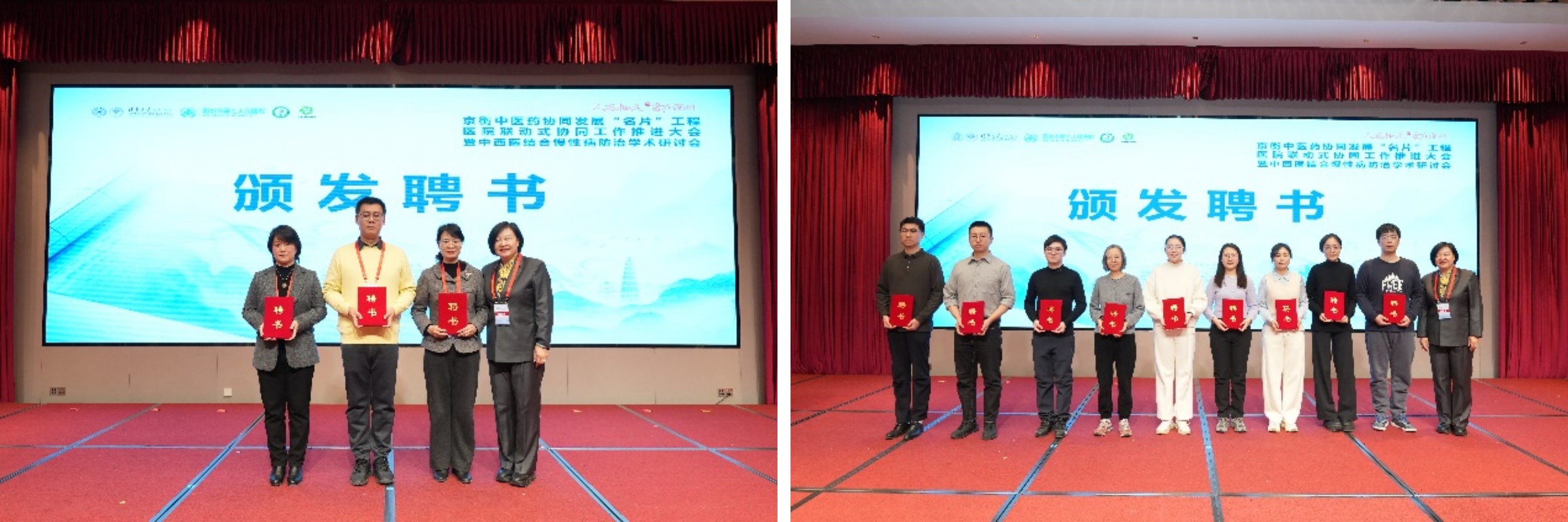 北京市中医药管理局医政处处长王欣、河北省中医药管理局法规监督处处长窦颖为饶阳县中医医院、深州市中西医结合医院专病门诊授牌,8xbet.com玉泉医院副院长冯兴中发布疑难病会诊患者招募书。